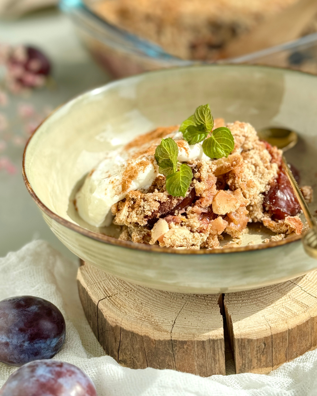• Piecz około 45 minut lub trochę dłużej, tak aby śliwki były idealnie miękkie, a kruszonka delikatnie rumiana.